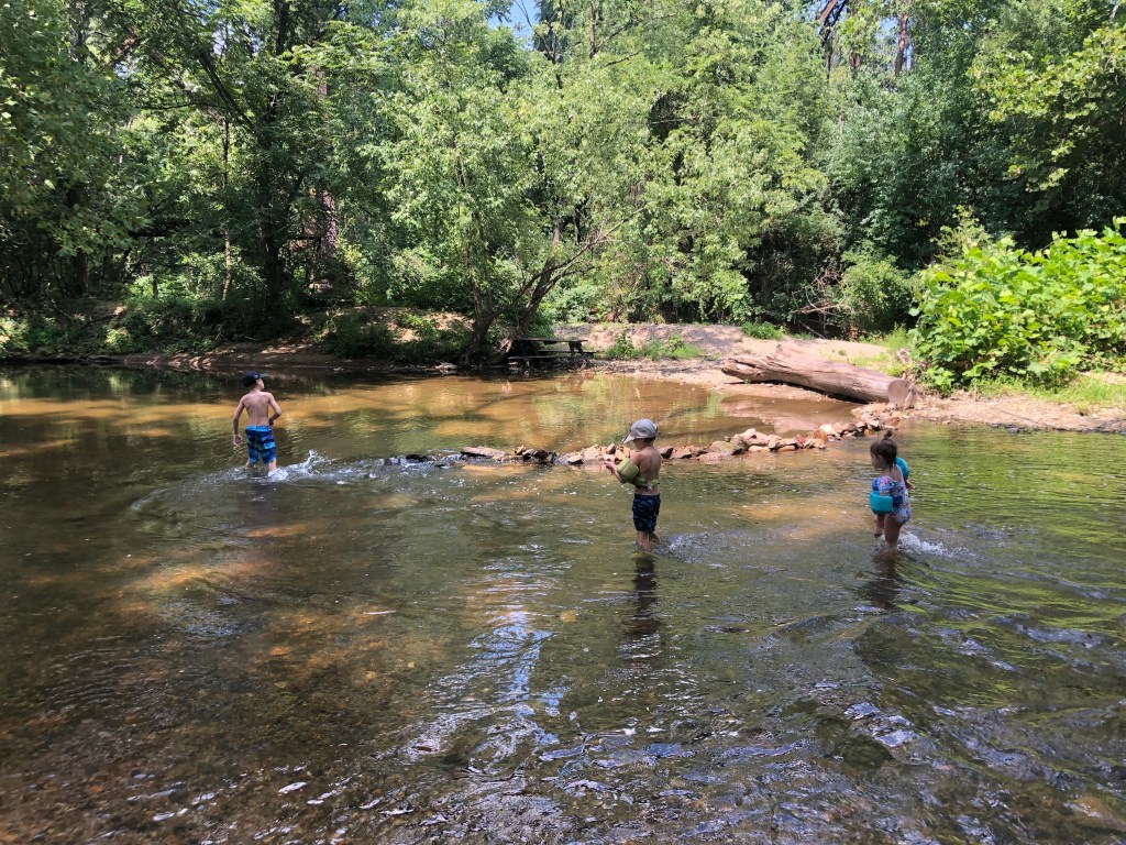 Thankfully, the Brandywine River runs through our town (and several towns surrounding us). It wasn’t too hard to find an empty parking lot where we could walk to a creek access point for some gentle splashing and wading.